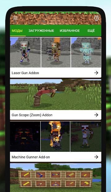 Guns mod for MCPE this is a great collection of top mods and addons (laers gun addon, gun spoce (zoom) mod, electic guns mod, fireball gun addon, hunter weapons addon and others mod for free). Also remember to use top Addons for minecraft, we recommend: furniture, weapons mod, lucky blocks, capes for minecraft, armor addon. MODS works with MCPE. Install NEW GUNS available for MINECRAFT PE. Weapons as Sniper Rifle, Bazookas, AK47, Grenades, Carbin, Ray Gun are just few guns to mention. Gun mod will add 100 + guns to your Minecraft PE. Everything from handguns to massive rocket launchers and handheld throwable items like bombs and molotovs..