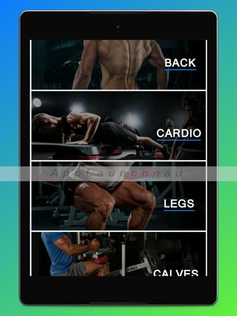– 100+ Exercises and 10 muscle group workouts: Chest, Abs, Shoulder, Biceps, Triceps, Forearms, Legs, Back, Calves, Cardio
