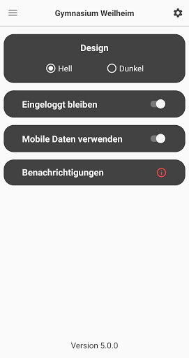Aplikasi Gymnasium Weilheim menunjukkan rencana perwakilan saat ini, informasi, jadwal dan rencana tertutup untuk Q11 dan Q12.
