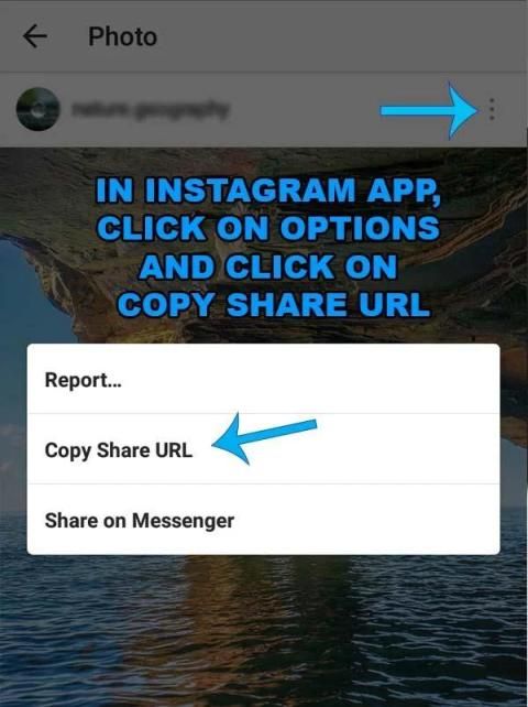 2. Buka Instagram Anda, pilih [ "Copy Share URL"] pada foto / video Anda ingin menyimpan