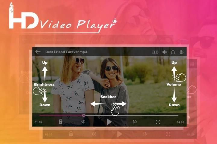 HD Player app support for multi-track audio and subtitles. It supports auto-rotation, aspect-ratio adjustments and gestures to control volume, brightness and seeking In Video Player All Format.