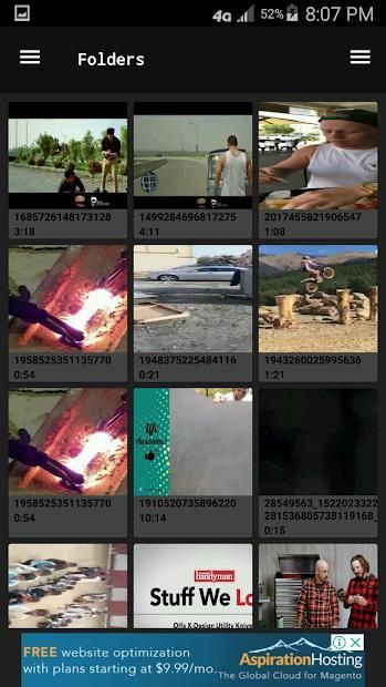 - Shows videos in Grid and list option.