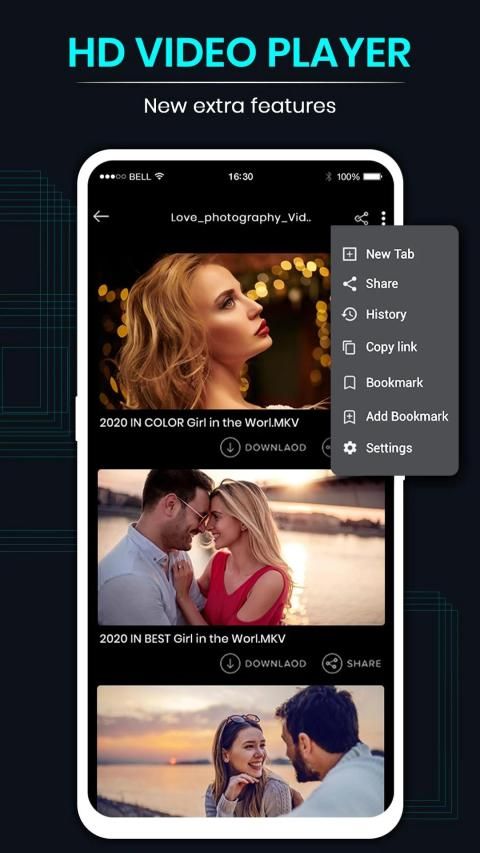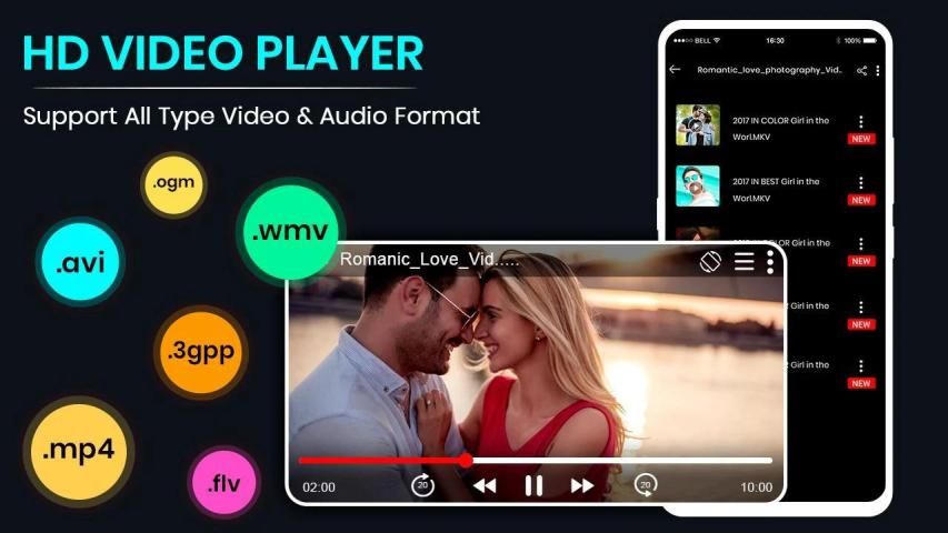 HD video player is the easiest phone video player, has a powerful video decoding capabilities to easily support you play almost all video files stored on your phone.