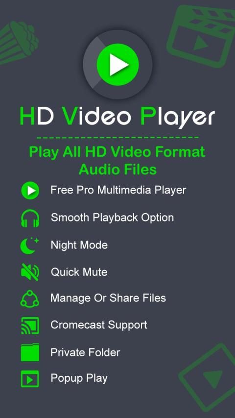 HD Video Player adalah alat pemutaran video profesional. Ini mendukung SEMUA format video, file video 4K / ultra HD, dan memutarnya dengan definisi tinggi. Ini adalah salah satu pemutar video HD terbaik untuk tablet dan ponsel android Android. HD Video Player juga melindungi video pribadi Anda dari dihapus atau dilihat ketika orang menggunakan perangkat Anda.