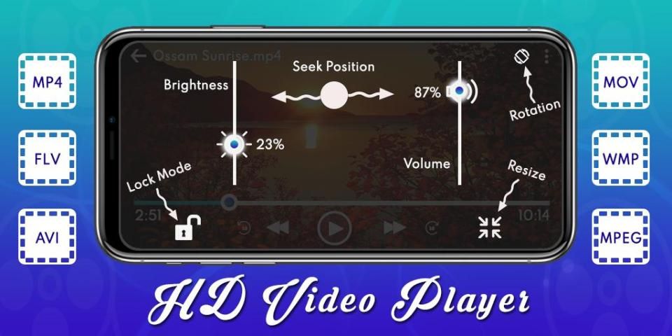 * Smart playback with auto-rotation, aspect-ratio, screen lock.