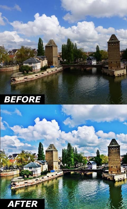 Intelligent HDR filters that can produce HDR effect by using one photo only. The app has 4 different HDR effects, ranging from light effect, which can be used to correct photos dynamic range, to extreme effect, which produces a dramatic HDR effect. Each filter has an adjustable filter strength slider which controls the intensity of the filter.
