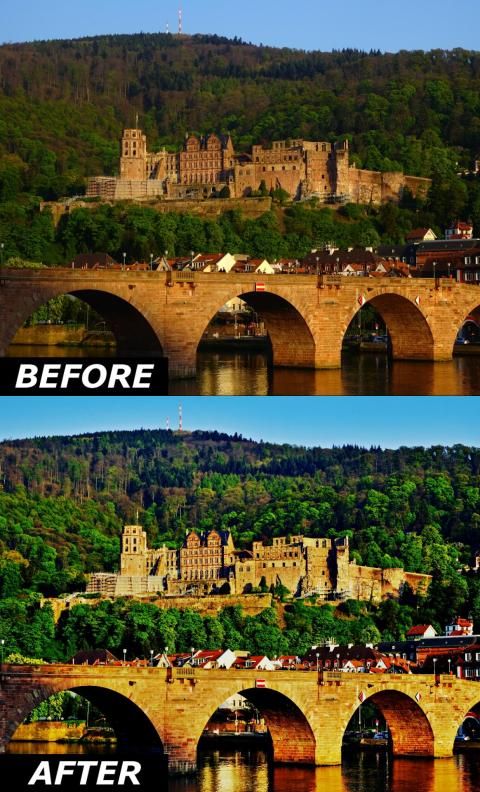 Color Enhancement Filters can further beautify the photo effect by applying a second filter on top of the HDR filters. More than 25 additional color enhancement filters are available with several effects such as contrast enhancement, aged film, black and white HDR, dreamlike, color glow, vintage and many other effects.