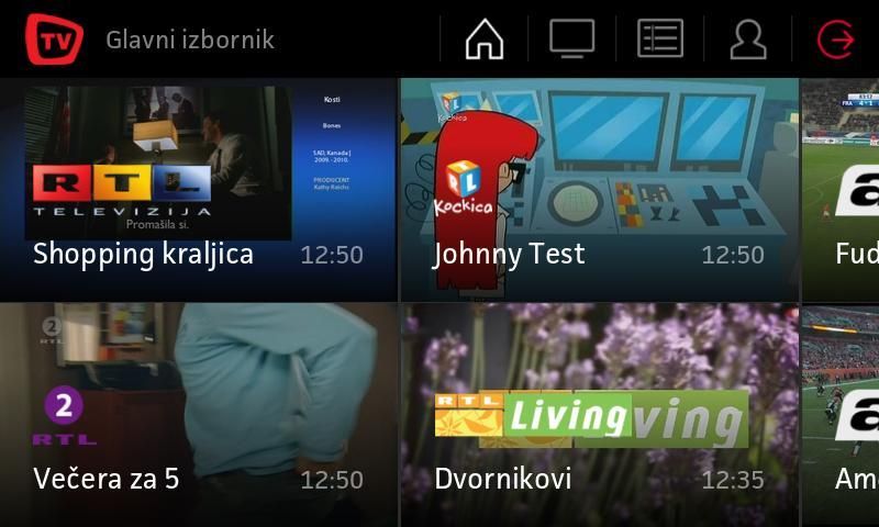 Home screen yang berisi screenshot dari saluran yang tersedia