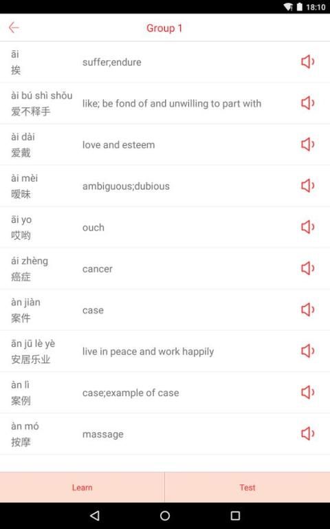 App set 10 kata dalam satu blok agar peserta didik dapat belajar mereka dalam cara yang teratur. Melalui rekaman proses pembelajaran, peserta didik dapat terus belajar dari dasar belajar lalu. Finishing dan melewati semua blok, peserta didik dapat sepenuhnya menguasai semua kata dalam tingkat HSK seluruh. Juga, peserta didik dapat berlatih kata-kata di dalam kotak koleksi berulang kali untuk meningkatkan memori.