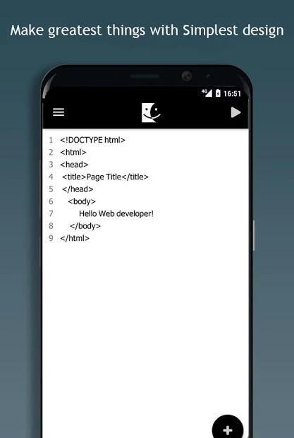 Aplikasi ini diperbolehkan untuk menulis dan mengedit html, css, javascript di ponsel Anda.