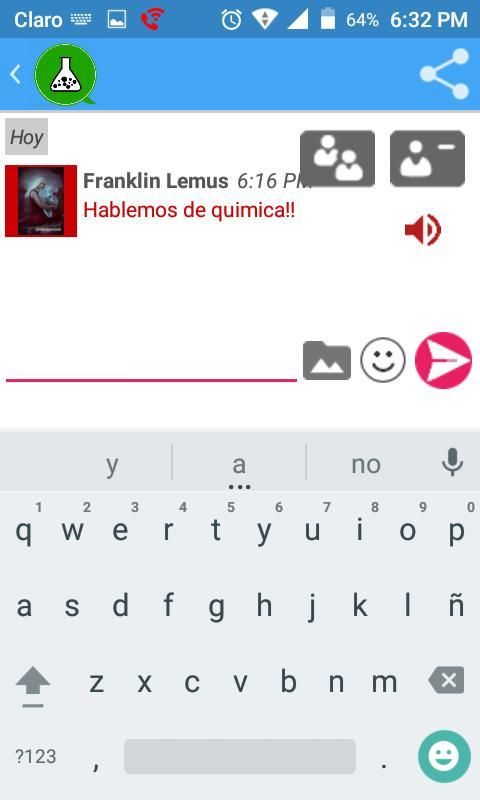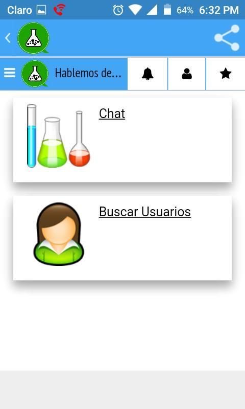 Aplikasi ini memungkinkan Anda untuk mengirim pesan (selalu terkait dengan kimia) ke ruang atau pesan pribadi ke pengguna.