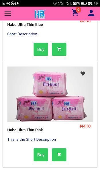 Habo store is an ecommerce app developed mainly for the sales of HB Habo Sanitary Pads. The Habo Sanitary Pads are high quality pads for consumers. Customers can buy any quantity of the product and have them delivered anywhere in Nigeria.