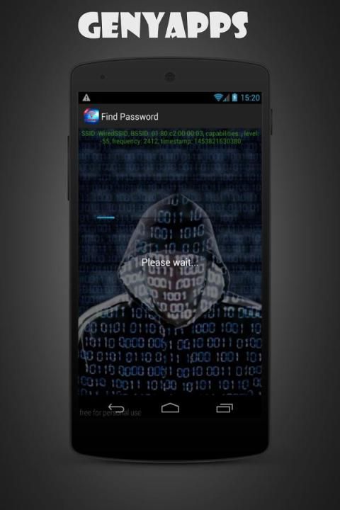 Hack Wifi Password Prank Geny scans for available wifi networks and displays security information about them. WiFi Hacker highligts routers with potentially weak protection. The hacking begins when you tap on a wifi network in range. A scary looking black box appears and pretends to break the networks protection.