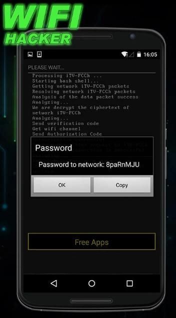 Aplikasi lelucon ini menciptakan ilusi bahwa ia dapat hack jaringan nirkabel aman dilindungi oleh WEP, AES atau WPA2.