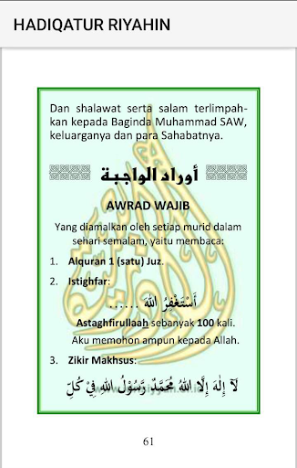 Berisi berbagai untaian wirid, zikir, shalawat, do’a-do’a permohonan dan perlindungan, yang berasal dari para Nabi dan orang-orang yang shaleh.