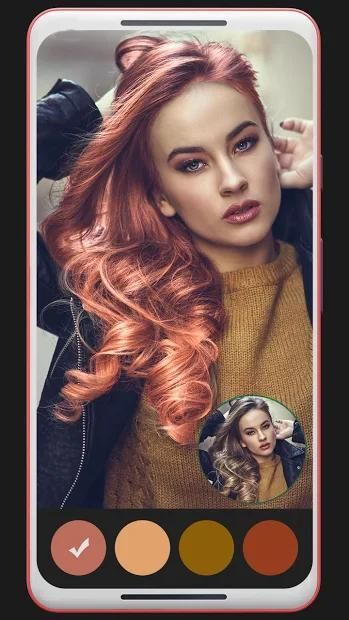 • All you have to do is take your own photo, brush your hair, and then choose different hair colors.