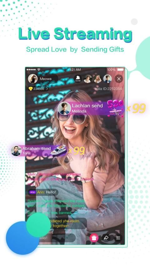 Hala will take away your bored life and will make it interesting by helping you chat and meet new friends from all over the world. Anytime and anywhere you can connect with other people and it is the good way to communicate with different cultured people and get to know their ideas about life, countries, habits and hobbies. Chat with people and make your time valuable. You will gain some skills and knowledge from each others. Don't wait – Join Hala, broadcast your life, gain many fans, receive gifts, earn money and be an idol easily.