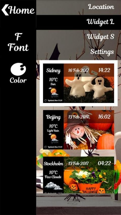 The ♦ terbaru Halloween Jam Cuaca ♦ akan menginformasikan tentang cuaca dan Anda selalu dapat mengandalkan itu karena memiliki sumber yang dapat dipercaya. Selain kondisi cuaca harian, kami juga telah menyiapkan perkiraan untuk 5 hari berikutnya untuk Anda, yang akan memberitahu Anda tentang hari masa depan dan menunjukkan apa yang diharapkan. Karena aplikasi ini populer menawarkan banyak tema menakjubkan, itu akan menjadi sulit untuk memilih hanya satu, tetapi beberapa dari mereka harus berdiri keluar. Apa pendapat Anda tentang jack-o'-lantern dalam kegelapan? Itu bersinar terang dan menerangi tanaman yang mengelilinginya. Anda dapat menemukan kerangka di kuburan di ♦ terbaru Halloween Jam Cuaca ♦ juga. Hal ini menunjukkan Anda batu nisan dan itu akan menjadi hiasan besar untuk widget cuaca. Jika Anda lebih suka adegan cerah, Anda akan senang melihat hantu berbentuk kue dan permen bergetah di bentuk menghangatkan dan laba-laba. Kelelawar, labu, serta orang-orangan sawah yang menunggu Anda di paling keren ♦ Halloween Jam Cuaca ♦, jadi jangan berpikir dua kali dan download aplikasi terbaik untuk Oktober 31 sekarang!