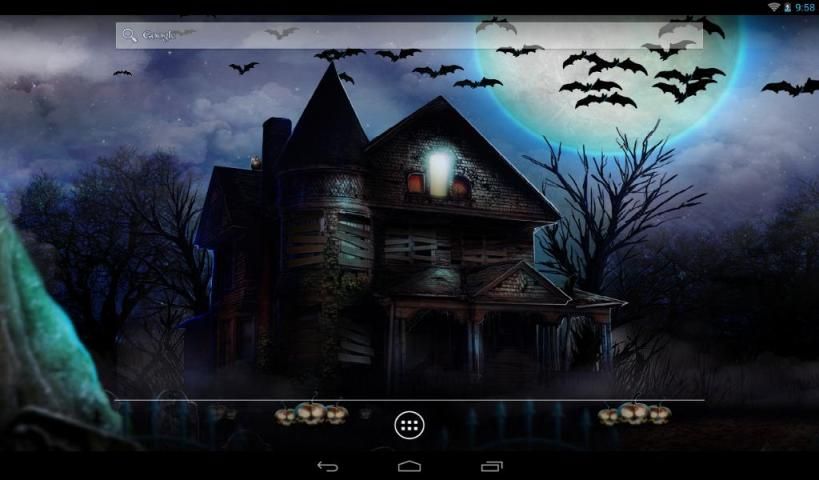 Halloween Live Wallpaper is an amazing quality active wallpaper. Now you can enjoy Halloween each time you use your phone! The application has a very high quality graphics, all the details are worked out at the highest level. High resolution used elements allows for the use of wallpaper without loss of quality even on tablets. Bats move very naturally, glowing pumpkins and appearing ghosts adds a thrill. In addition, the parallax effect, flying clouds on a background of red moon and lightnings on the sky makes this application a perfect gadget for a smartphone.