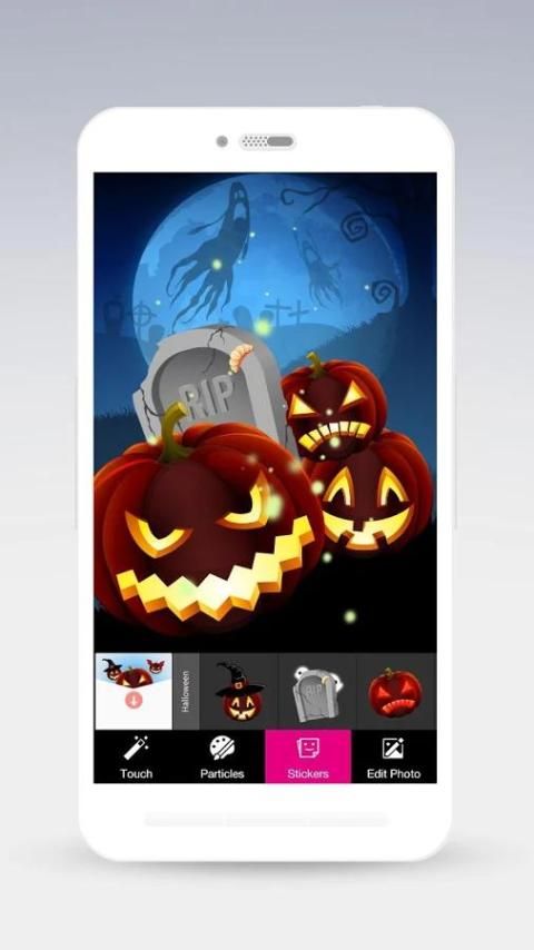 * Kemudian memilih dan menggunakan stiker favorit Anda Halloween di Wallpaper DIY Anda untuk membuat latar belakang HD yang menakjubkan;