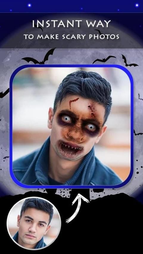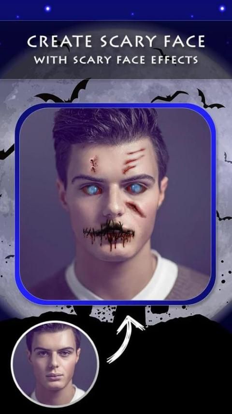 halloween makeup wajah kita penuh dengan efek menakutkan realistis besar dengan mana Anda dapat menakut-nakuti orang dan membuat Halloween ini pengalaman yang luar biasa. Anda dapat memilih gambar apapun dari galeri ponsel atau klik gambar dan kemudian mengubahnya sederhana melihat gambar dari teman Anda menjadi zombie mematikan oleh menakutkan wajah changer kami,