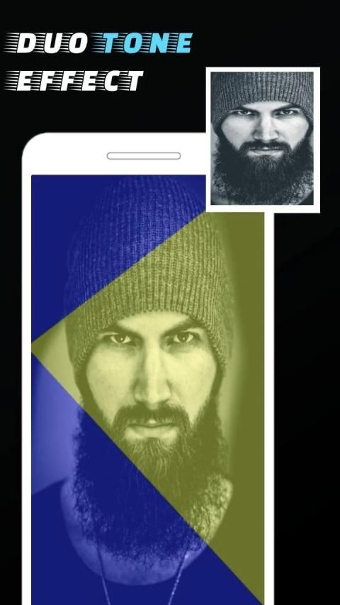 Berikan efek nada duo yang elegan untuk setiap foto favorit Anda. Terapkan filter gelap dan latar belakang gelap, latar belakang warna untuk memberikan tampilan khas untuk gambar Anda