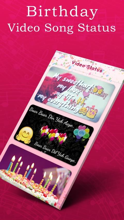 With the updating of mobile application, 30,000+ users downloaded Birthday Video Status latest version on 9Apps for free every week! It works great even on 2G. This hot app was released on 2019-03-20. And it takes your phone small room to run it.