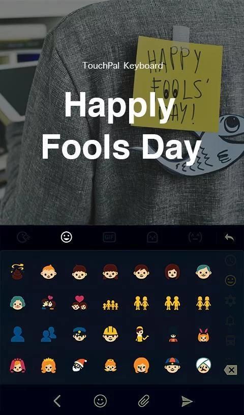 - Pasang Baru Gratis TouchPal Selamat Fools' Day Emoji Keyboard tema ---> Tekan ikon ---> Ini akan diaktifkan oleh TouchPal Emoji Keyboard secara otomatis!