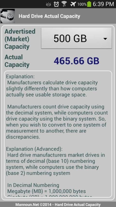 Produsen menghitung kapasitas drive menggunakan sistem desimal, sementara komputer menghitung kapasitas drive menggunakan sistem biner, jadi, ketika Anda ingin mengkonversi ke satu sistem pengukuran yang lain, ada perbedaan.