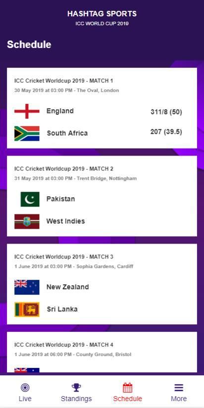 Hashtag Sports Product is an app released with only ICC Cricket World Cup update module. In future we are coming up with all the other formats, games