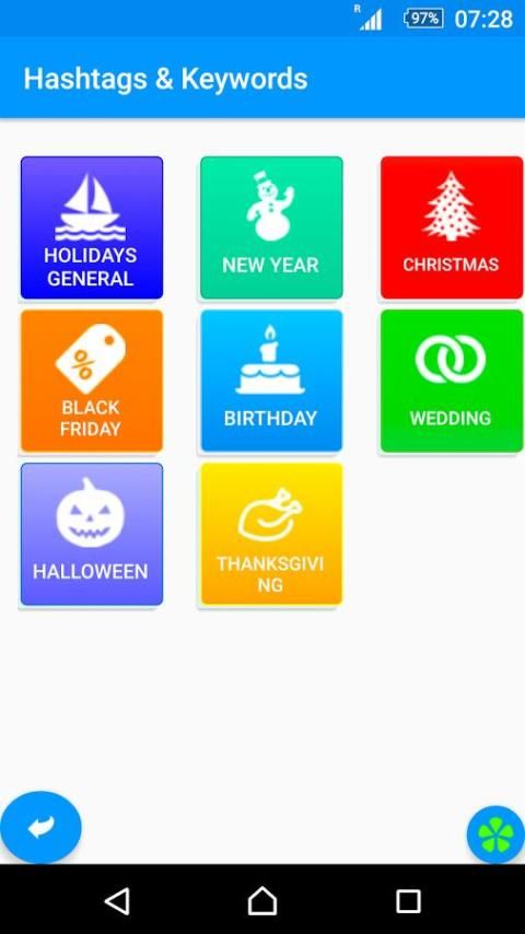 * Pilih hashtag atau nama kata kunci, tekan "Copy" tombol pasta hashtags yang diperlukan, kata kunci pada gambar, video.