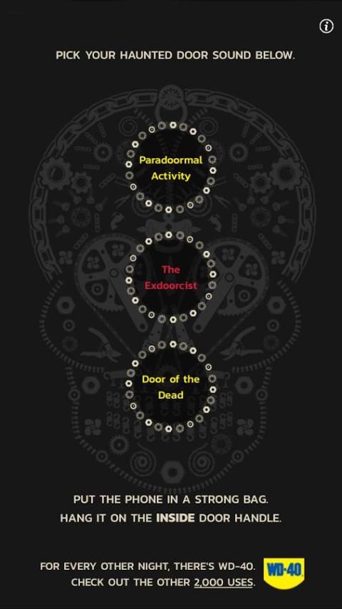 Hanya men-download aplikasi, pilih favorit pintu berderit menyeramkan Anda, letakkan ponsel Anda dalam kantong kuat atau tas belanja kuat-ditangani, dan menggantung di dalam gagang pintu Anda. Dan kemudian semua yang harus Anda lakukan adalah membuka pintu Anda untuk mengirim menggigil sampai tulang punggung mereka setiap waktu.