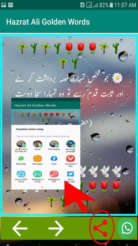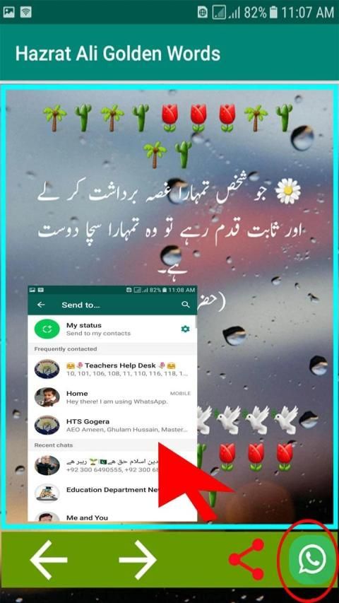 In this app you can share status in Whtsapp Group and make a status with beatiful golden words hazrat ali R.A in urdu text...with outstanding emoji ....