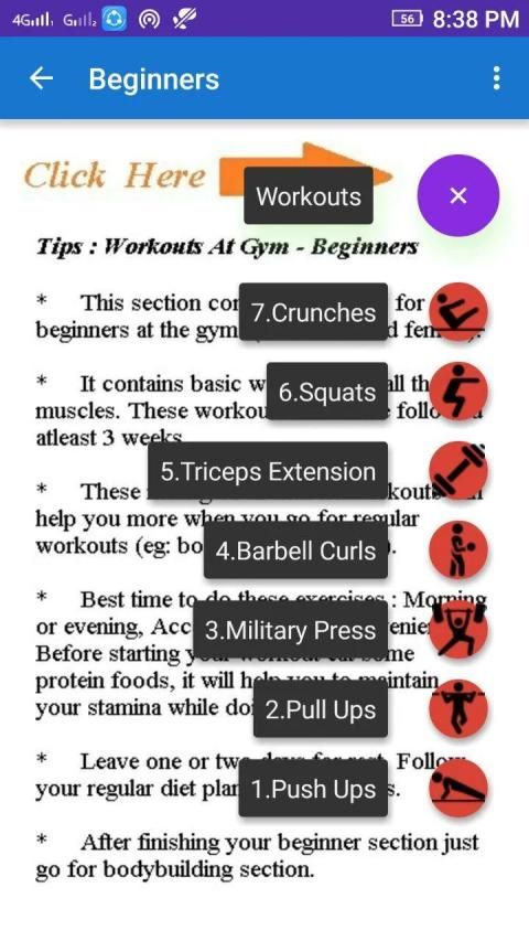 * Workouts At Gym - This section provides workout procedures and routines for people who wants to build their body with better shape.