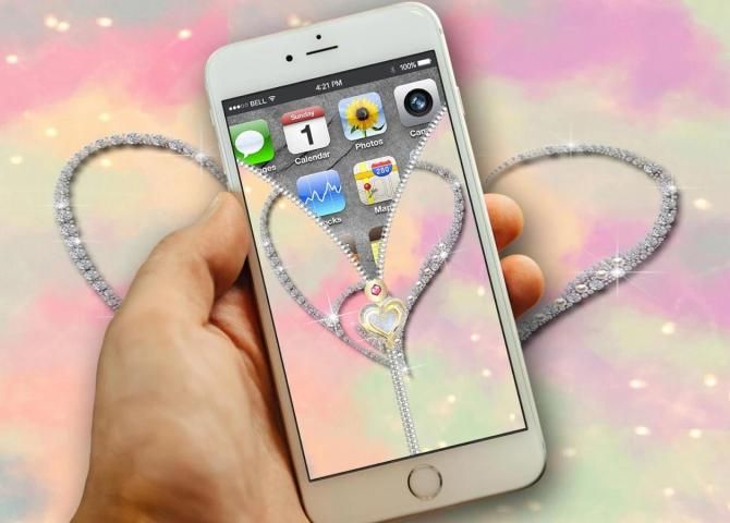 On Home screen show the miss call, message, battery percent,Pull down the heart zipper lock screen unlock and reveal the custom photo.