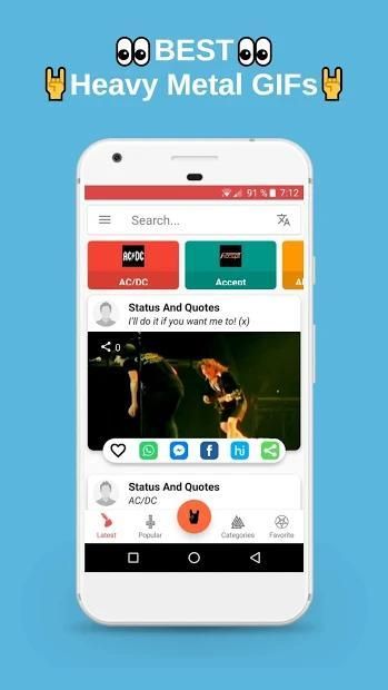 Heavy Metal GIFs App is an Android Full application with beautiful material design, Powerful features allows you to post yours status Heavy Metal GIFs on application and share status of other users as text or as Gif with your Friends in any Social Network you want, write comments, add your Reaction about any Status, add Status in your favorite list, send notification to android devices and more.