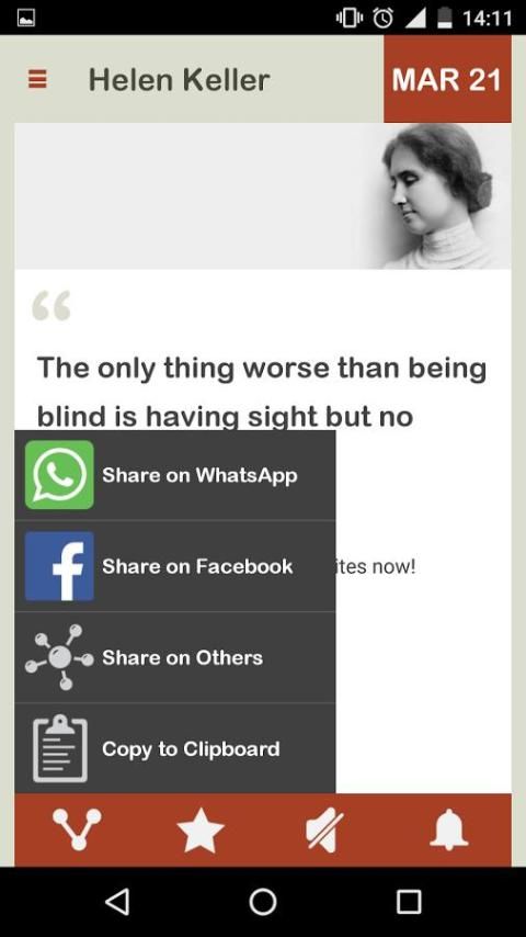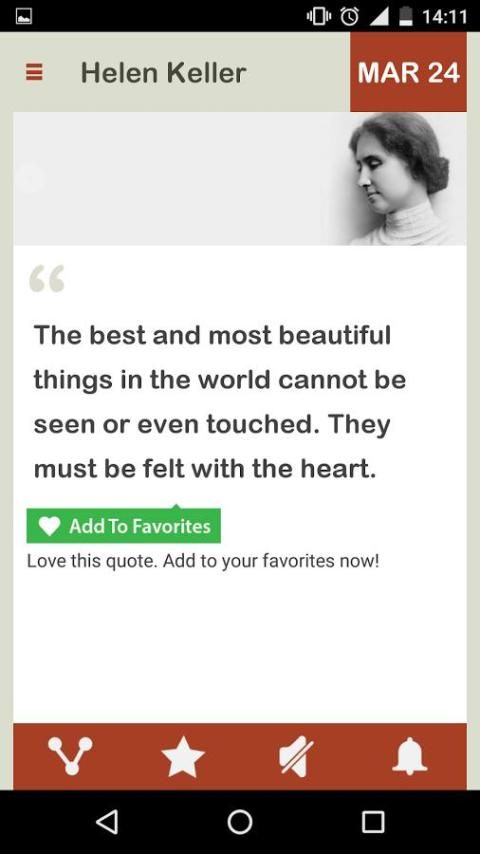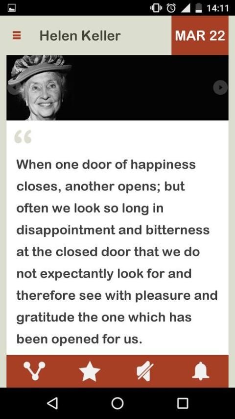 Helen Keller Harian membawa kebijaksanaan Helen kepada Anda dalam bentuk Ponsel App, bangun setiap hari, dengan kebijaksanaan Spiritual Helen Keller, mulai hari ini.