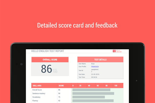 Aplikasi penilaian bahasa Inggris saat ini telah diluncurkan untuk organisasi mitra dan hanya pemenang kontes bahasa Inggris . Itu akan segera disediakan untuk pembelian juga. Tonton ruang ini untuk tindakan lebih banyak!