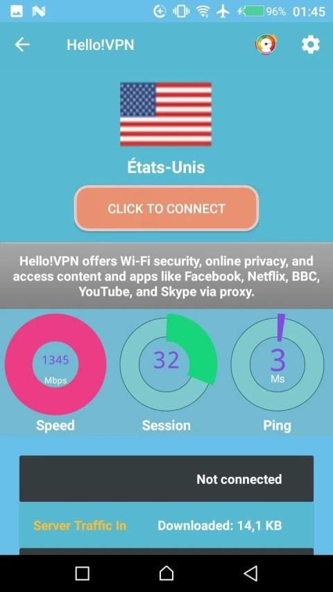 Buka blokir situs web dan aplikasi, privasi dan keamanan Internet yang cepat dan gratis untuk pengguna Android. Jangan khawatir jika Anda menggunakan Hotspot WiFi publik, dengan Hello! VPN, Anda dapat menguasai penelusuran Internet.