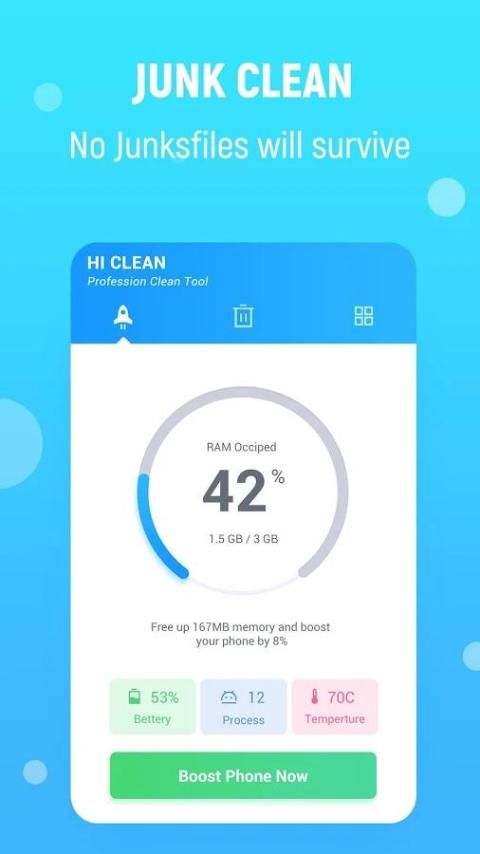 Terlalu banyak file sampah memperlambat telepon Anda? Tidak tahu di mana denda file yang tidak perlu tersembunyi? Hanya satu keran dengan Hi Bersih, sampah Iklan / sisa sampah / cache sampah / memory (RAM) sampah / APK file yang tidak berguna semua mudah dibersihkan.