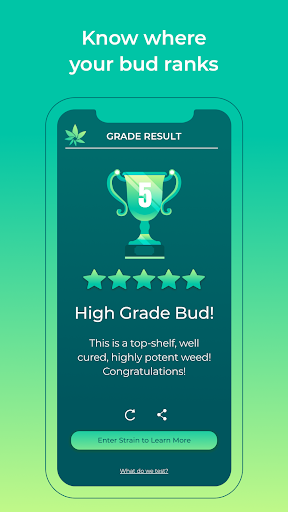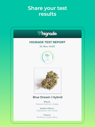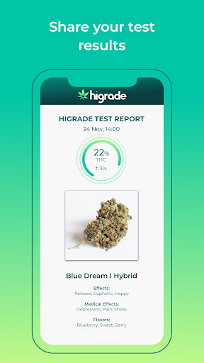 Langsung menguji kualitas bunga kanabi Anda langsung dari ponsel Anda. Tiga foto adalah semua yang Anda butuhkan untuk mendapatkan wawasan nyata tentang kesehatan dan kualitas tunas Anda. Tidak perlu peralatan lab! Analisis kualitas tanaman Anda dan% THC dengan memanfaatkan kekuatan intelijen buatan dan algoritma pengujian hak milik HIGRADE. Ubah ponsel kamera Anda menjadi stasiun pengujian yang akurat dan portabel sehingga Anda dapat lebih memahami produk di depan Anda.
