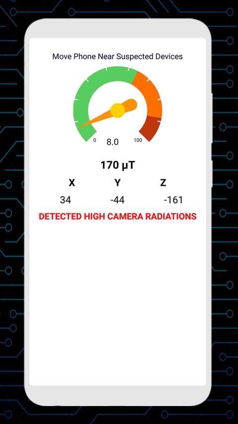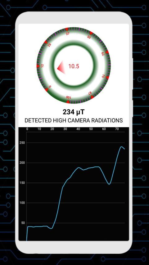 Hidden camera detector Hidden camera detected camera founder found hidden camera, find hidden camera by radiation meter. you can use this hidden camera detected camera scanner app to detect infrared camera. It detect hidden devices easily such as camera, bugs, metal, microphones, glint. this hidden camera detected camera founder protect you from spy hidden camera. some thing the reading of radiation meter of magnetic sensor of your mobile stuck.