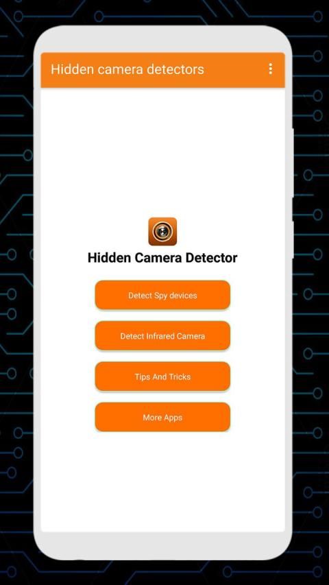 Hidden Camera Detector easily detect hidden camera and microphones. It is free to download and is a great multi option to detect hidden cameras and spy camera microphone. finding spy hidden cam and hidden device is now very easy using this hidden camera detection app for detecting hidden camera and detecting spy camera. transparent spy camera, wiretap detector, spy deice detectors spy video camera detector discover hidden camera and protect your self from spy camera as anti spy cam.