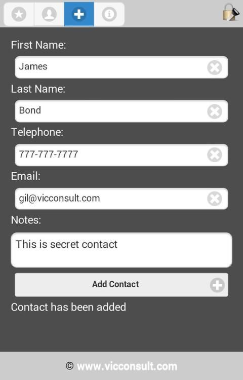Dengan Rahasia Tersembunyi Daftar Kontak aplikasi Anda dapat mengatur kontak Anda dengan menggunakan kunci rahasia yang berbeda, seperti yang berhubungan dengan pekerjaan kontak, kontak bisnis, kontak keluarga, atau kontak yang ingin Anda sembunyikan dari suami-istri atau anak-anak.