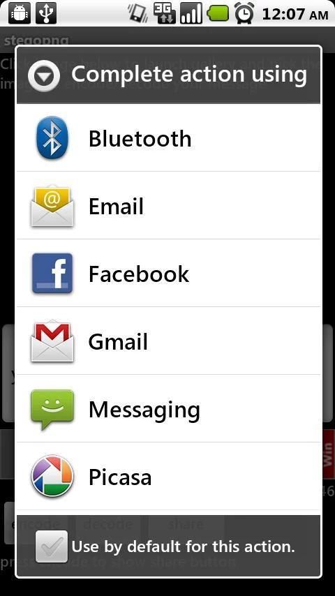 Gunakan aplikasi untuk menyembunyikan pesan dalam gambar dan mengirim sebagai lampiran email. Pesan sekarang dienkripsi dengan AES menggunakan password Anda. Password default adalah 1234, password dapat berubah di bawah menu | Pilihan