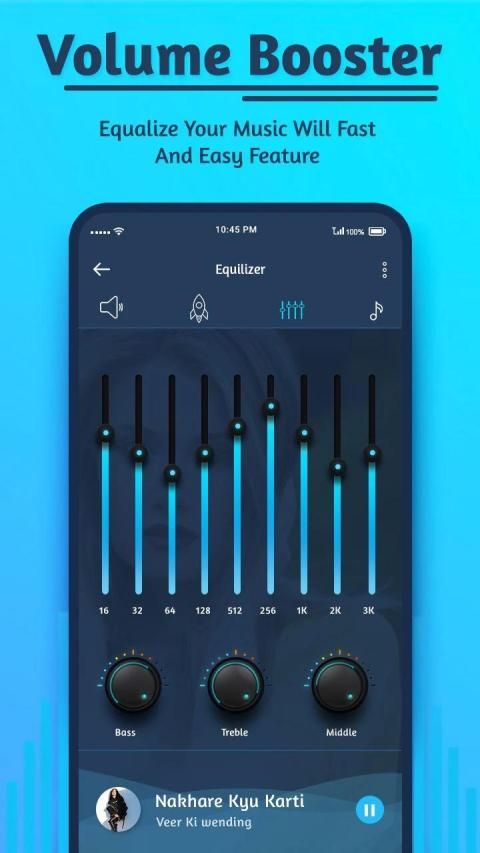 - Tingkatkan bass, volume booster musik keras dan efek suara lainnya.