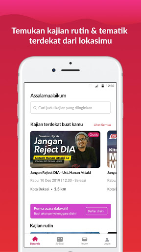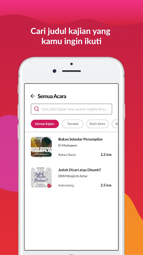 Dapat info kajian berdasarkan lokasi terdekat, dan tema yang diinginkan.