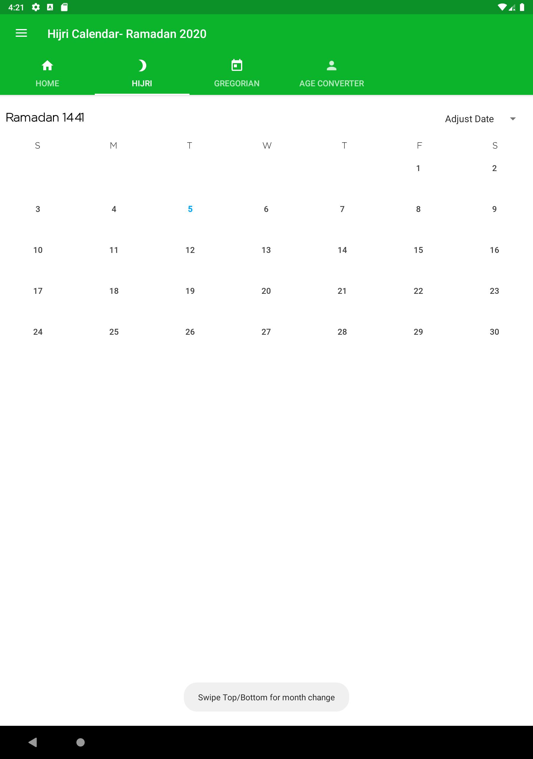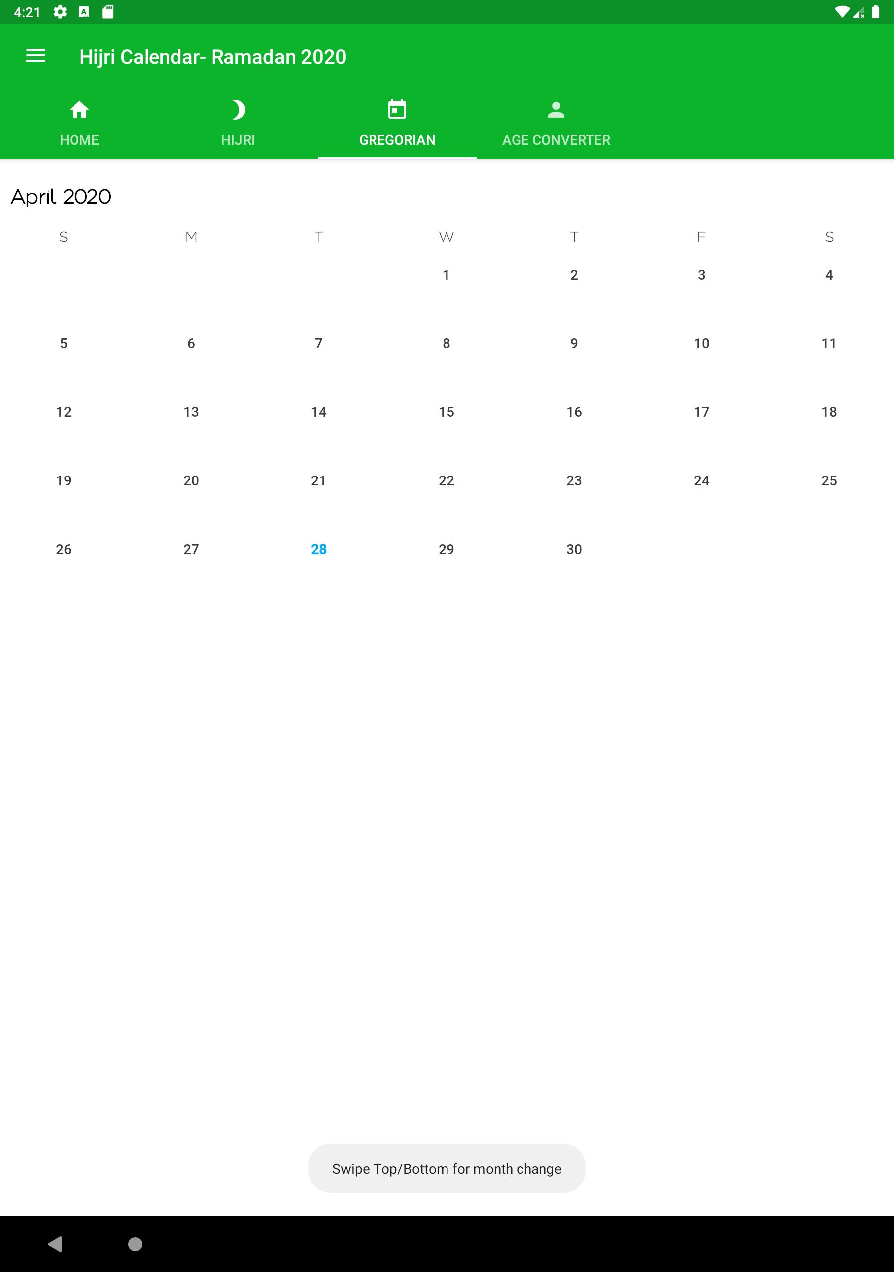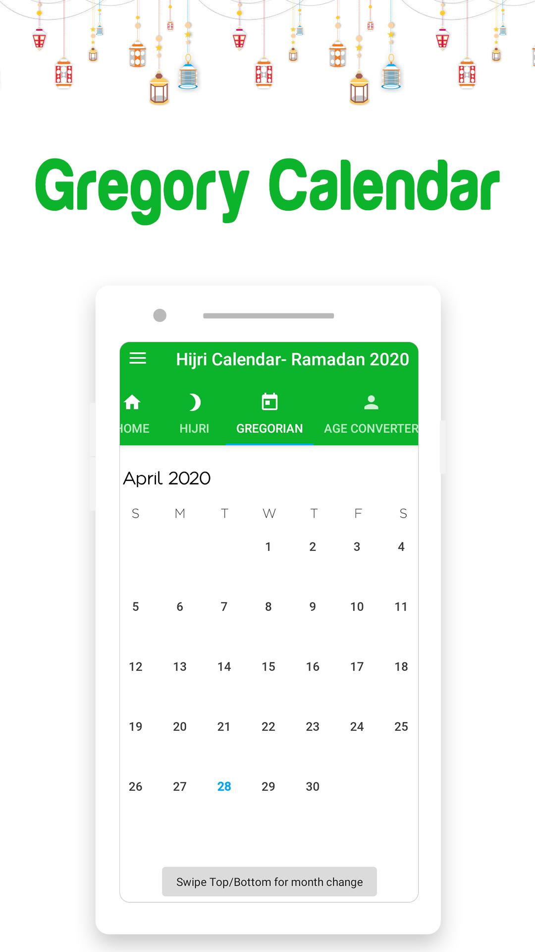 • Use Swipe b/w calendar tabs from to convert Hijri to Gregorian and Gregorian to Hijri.