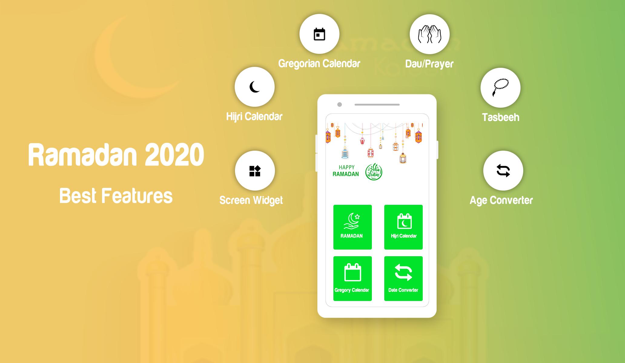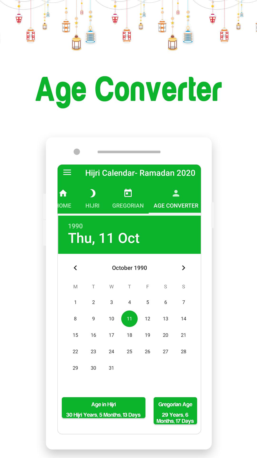 Get the free and accurate hijri and gregorian date calendars. Specially designed for Ramadan with dua/prayer and tasbeeh counter. Supported with the best on-the-fly hijri age converter. To find your age in hijri just put your birth date and calculate your age.