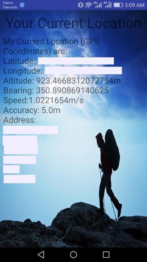 Ia menemukan Lokasi Anda berdasarkan GPS telepon Anda dan Memberikan Anda GPS Koordinat dan Lokasi Alamat dengan Latitude, Longitude, Altitude, Bearing dan Kecepatan.